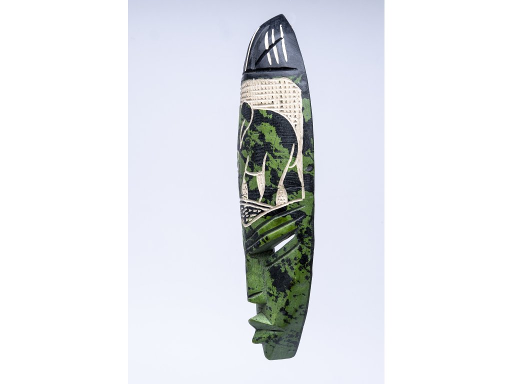 Každý kus je ručně dělaný originál, a proto se může mírně lišit v odstínu dřeva či vzoru. Právě tato drobná odlišnost dodává masce její skutečné kouzlo.