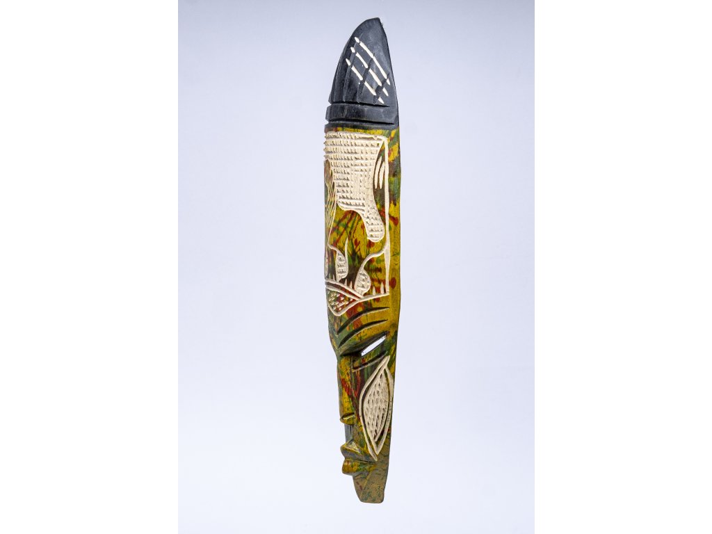 Ačkoli se jedná o moderní dekorativní masku bez konkrétního rituálního významu, dokáže u vás doma vytvořit atmosféru tepla, autenticity a jemné exotiky. Nejlépe vynikne zavěšená na zdi, kde rozjasní obývací pokoj, pracovnu nebo třeba dětský koutek malého objevitele.