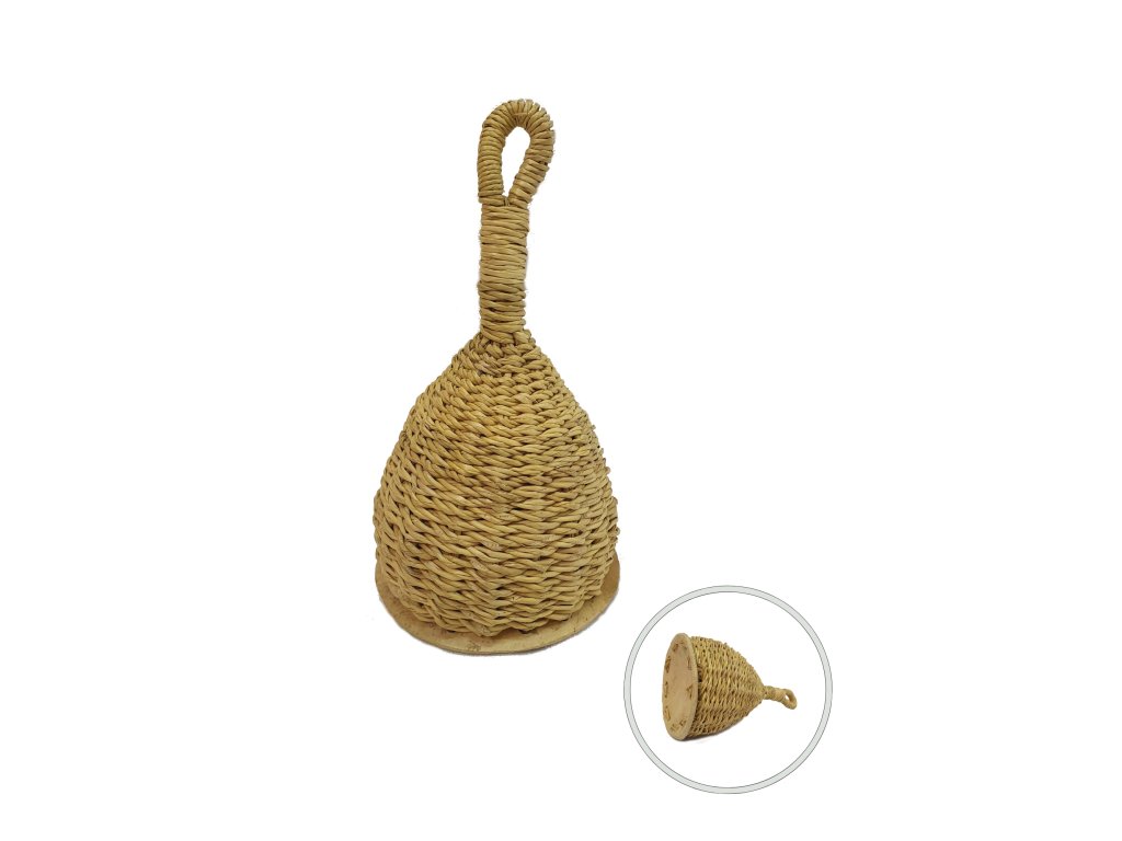 Africké chřestidlo Caxixi z ratanu a kalabasy z Ghany