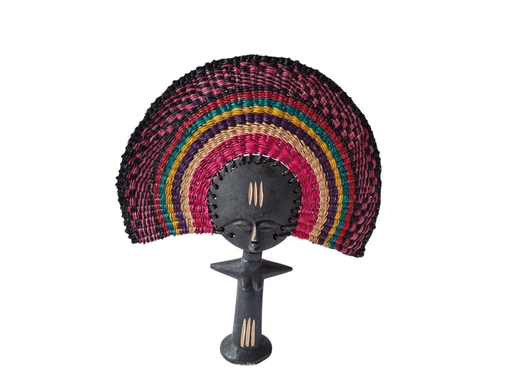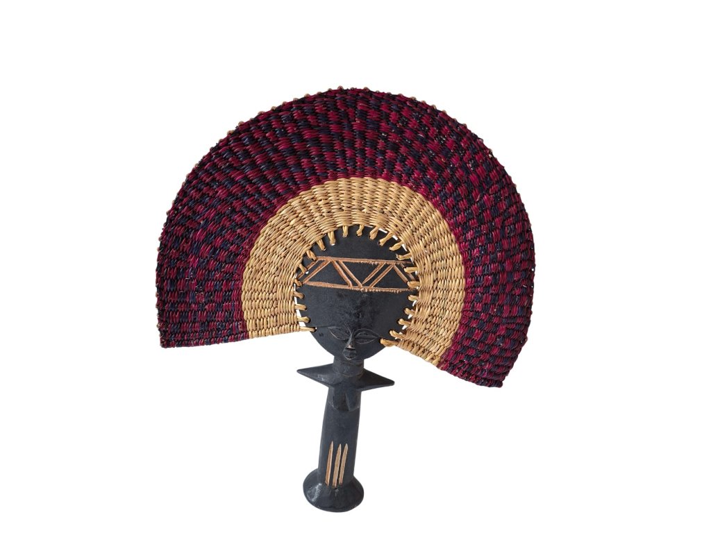 Tato ručně vyřezaná africká panenka plodnosti z Ghany spojuje tradiční symboliku Ašanti s moderním etno-designem. Každý kus je originál – tělo panenky je vyřezané z lehkého, ušlechtilého dřeva Sese, horní část tvoří vějíř z africké sloní trávy, ručně sbírané, barvené a pletené ghanskými řemeslníky.