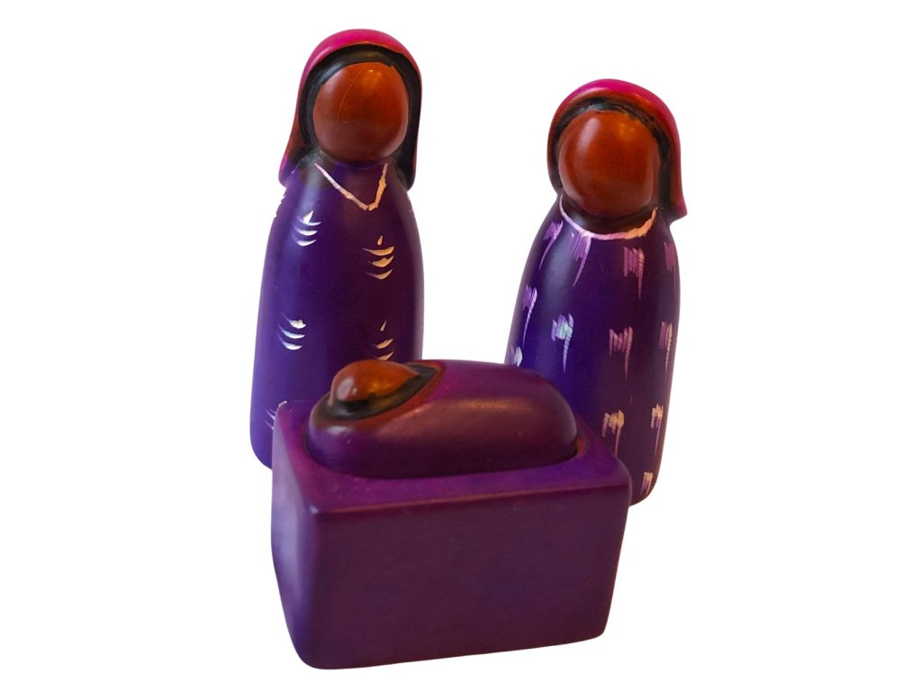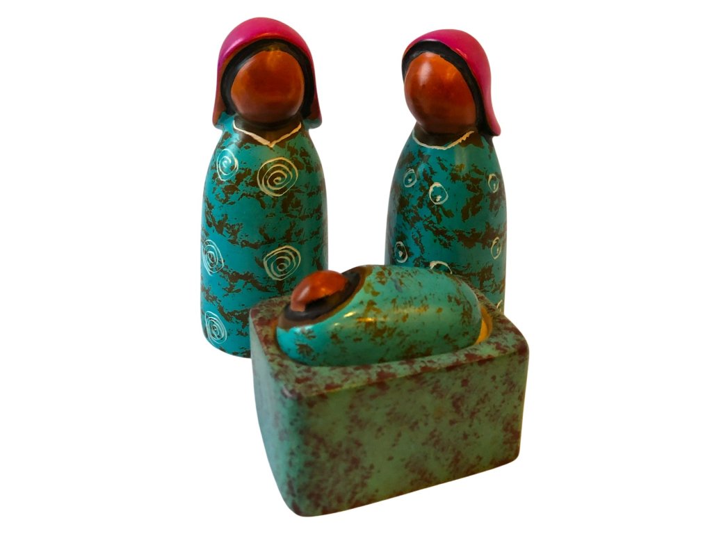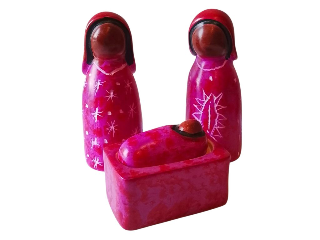 Tento betlém z Afriky se skládá ze sady tří figurek – Panny Marie, svatého Josefa a dítěte Ježíše. Figury jsou ručně vyřezávané z mýdlového kamene v Keni a doplněné barevným malováním, které zvýrazňuje přirozené tvary kamene a dodává celé scéně teplo a autentickou africkou atmosféru.