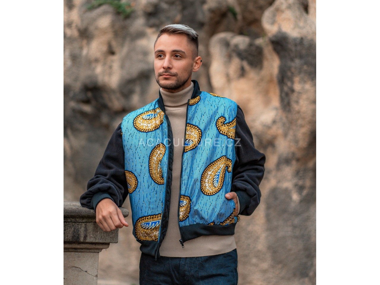 Zima může být veselá, barevná a s duší – stačí si ji obléct! Tato unisex bomber bunda z originální africké bavlněné tkaniny byla vytvořena s láskou k barvám, kultuře i řemeslu.