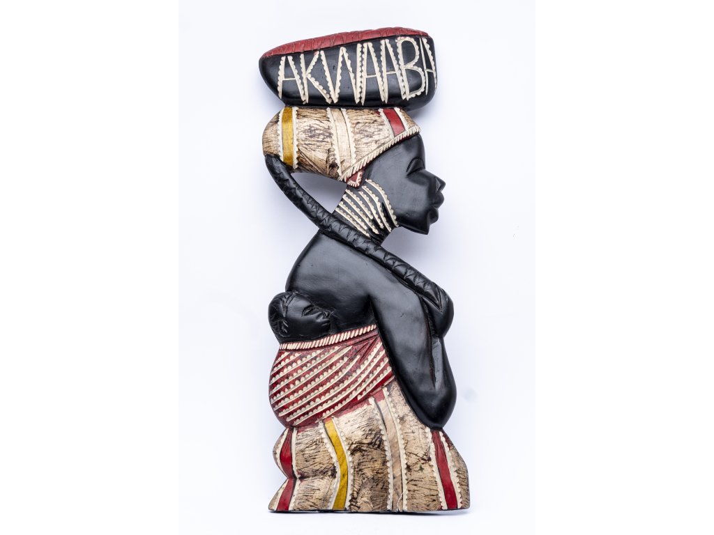 Plastická řezba je vyrobená z tropického dřeva Mukulungu. Jedná se o velmi kvalitní africkou dřevinu s červenohnědým zbarvením a tmavě hnědými žilkami. Mukulungu, stejně jako Sese, je díky své odolnosti stále vyhledávanější materiál. Nejen při výrobě interiérových dekorací. Dekorace je od samého začátku až po finální řezbu zhotovená ručně. Může se tak stát, že bude kus od kusu krapet odlišný. O to víc se můžete těšit z toho, že máte doma opravdu jedinečný kousek Afriky!