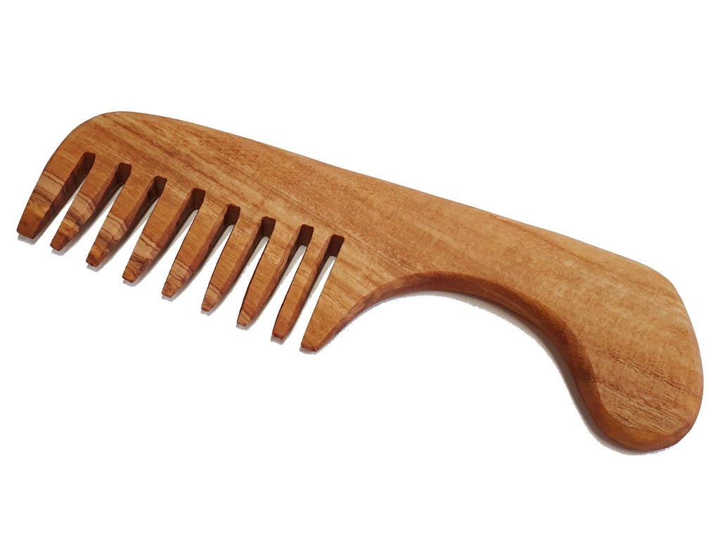 Tento hřeben z olivového dřeva, ručně vyrobený v Tunisku, je skvělou volbou pro šetrnou péči o všechny typy vlasů – včetně kudrnatých nebo hustých. Díky širokým zubům a větším mezerám mezi nimi je rozčesávání snadné a bez zbytečného lámání nebo poškození vlasů. Olivové dřevo je přirozeně antistatické a odolné, což hřebenům zajišťuje dlouhou životnost. Po vyřezání a broušení je hřeben jemně napuštěn olivovým olejem, který zajišťuje příjemný, hladký pocit při používání. Tento přírodní a kvalitní materiál Vám bude věrně sloužit po mnoho let.