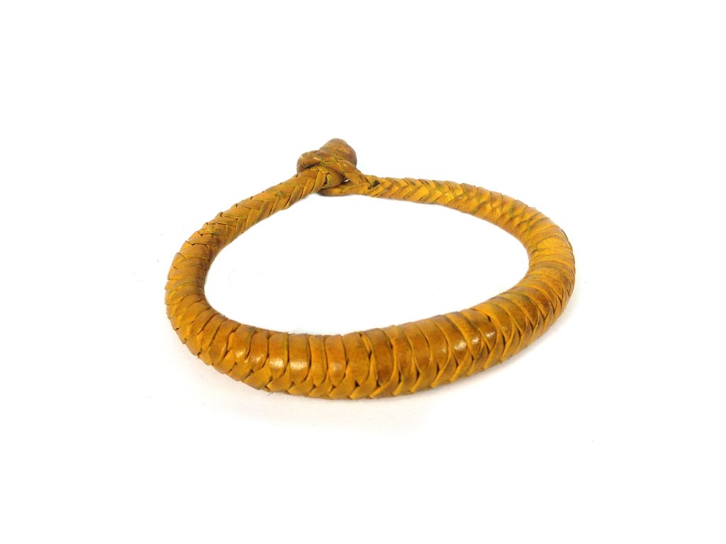 Tento ručně pletený kožený náramek z Burkiny Faso v sobě nese autentickou energii afrického řemesla. Zkušené ruce místních mistrů splétají prameny kvalitní kůže do pevných, a přitom pružných linií, které se přirozeně přizpůsobí vašemu zápěstí.