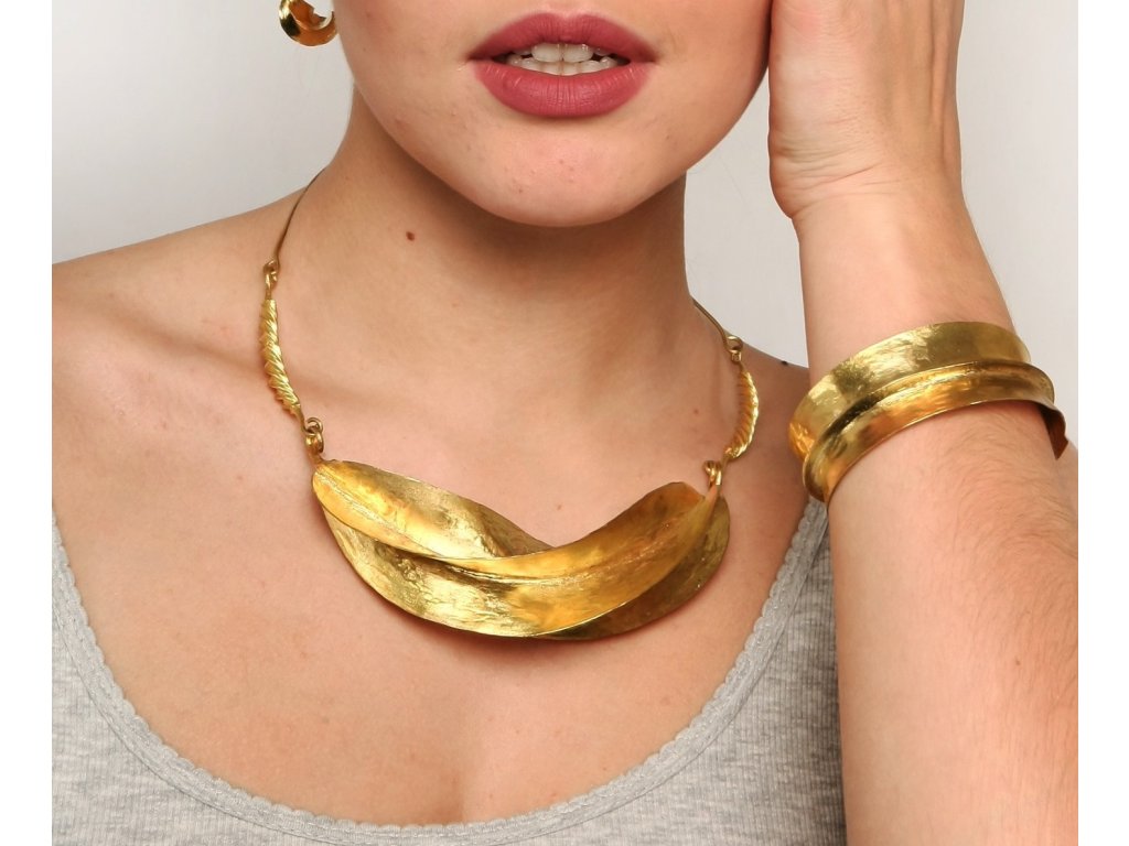 Tento náhrdelník Fulani je ručně z bronzu a inspirovaný tradičními šperky kmene Fulbe. Střední masivní prvek v tvaru karamboly je přesto lehký a pohodlný, díky jemnému tepání jednotlivých dílů, které se následně sestaví do elegantního celku. Jemné linie a tradiční styl spojují nadčasovou eleganci s lehkostí, která okouzlí na první pohled.