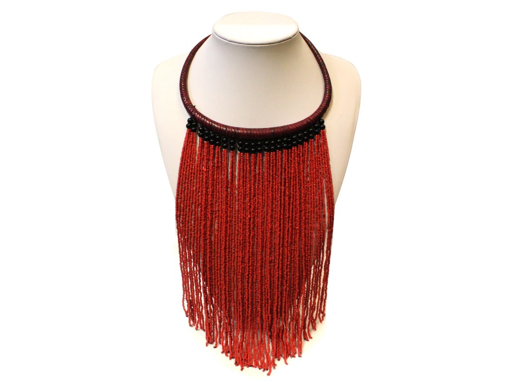 Tento vznešený korálkový náhrdelník z rokajlů a kůže je doslova ztělesněním elegance s nádechem exotiky.
