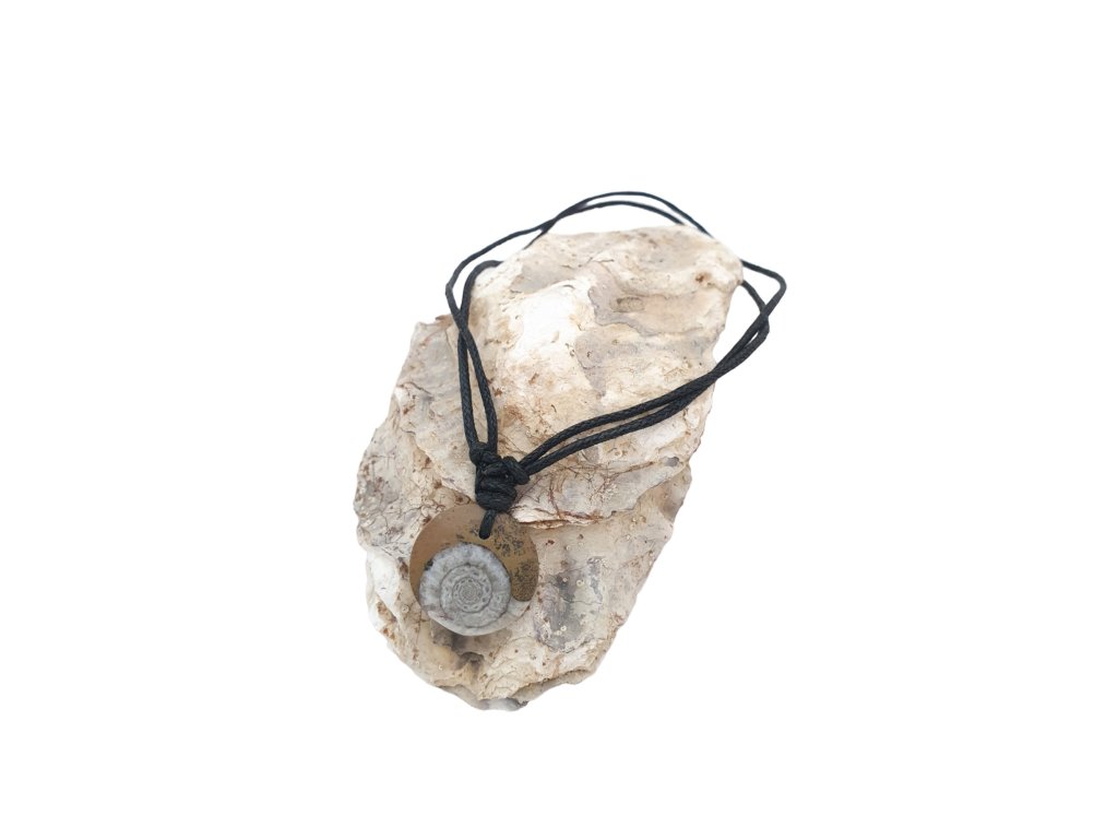 Náhrdelník, který spojuje styl a přírodní fascinaci – přívěsek z zkamenělého amonitu, který nese miliony let paleontologického příběhu. Každý amonit je unikátní svou strukturou a barvou, takže žádný náhrdelník není úplně stejný.