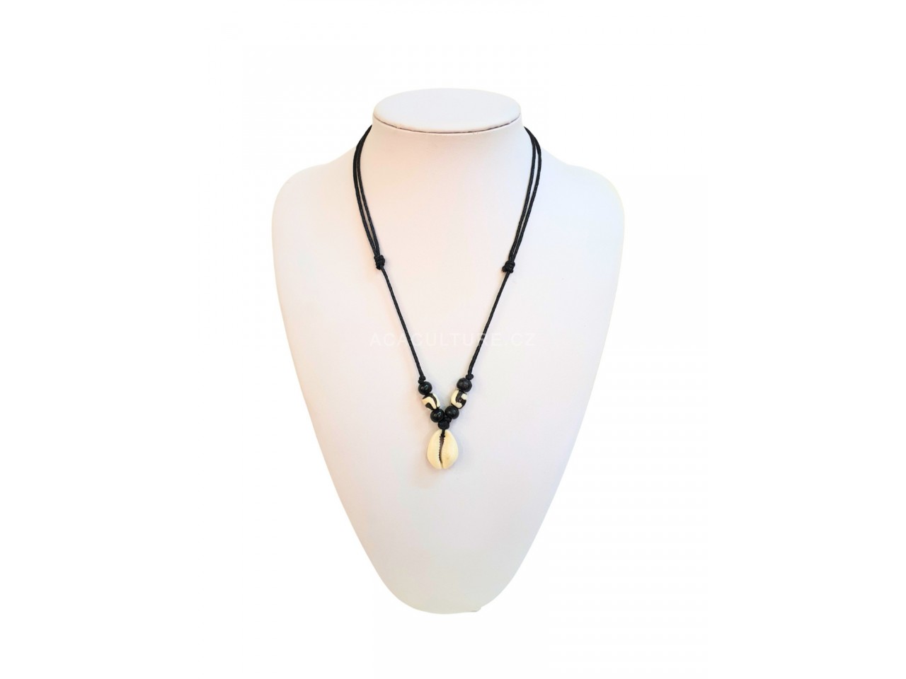 Lehký náhrdelník s přírodní mušlí kauri a korálky z kosti v minimalistickém etno stylu. Voskovaná šňůra s nastavitelnou délkou pro ženy, muže i děti od 3 let.
