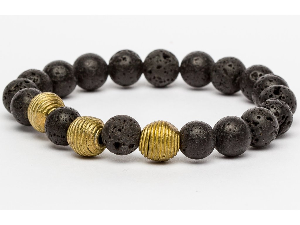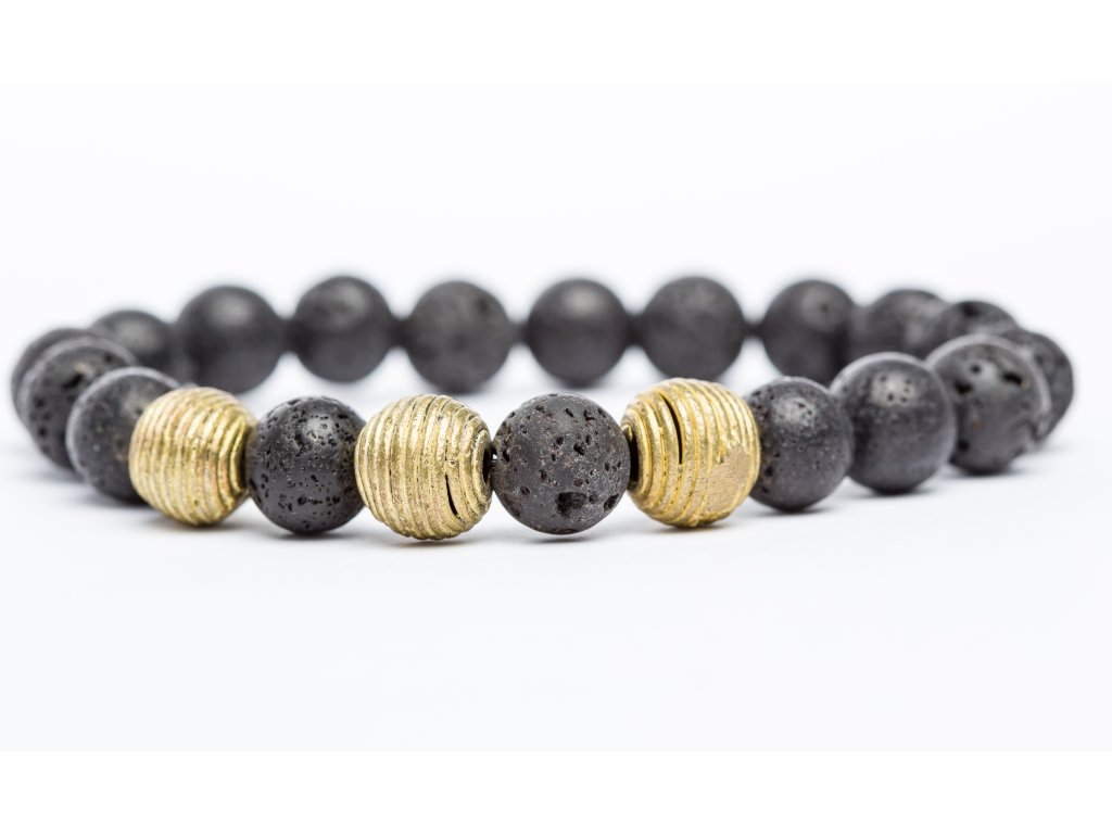 Náramek z lávových a bronzových korálek