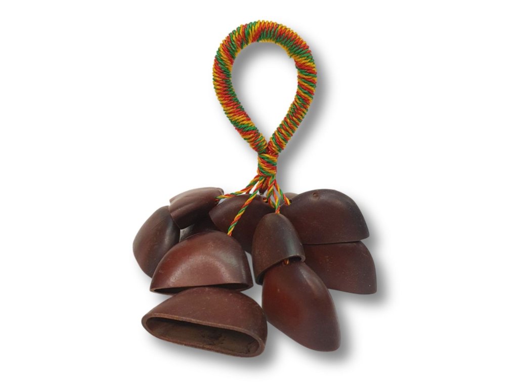V Ghaně se podobná ořechová chřestítka používají při tancích, oslavách a hudebních obřadech, kdy pomáhají udržovat rytmus. Každý kus je ručně vyrobený tradičními řemeslníky, z přírodních materiálů nasbíraných v africké přírodě – žádné dva nástroje proto nejsou stejné.