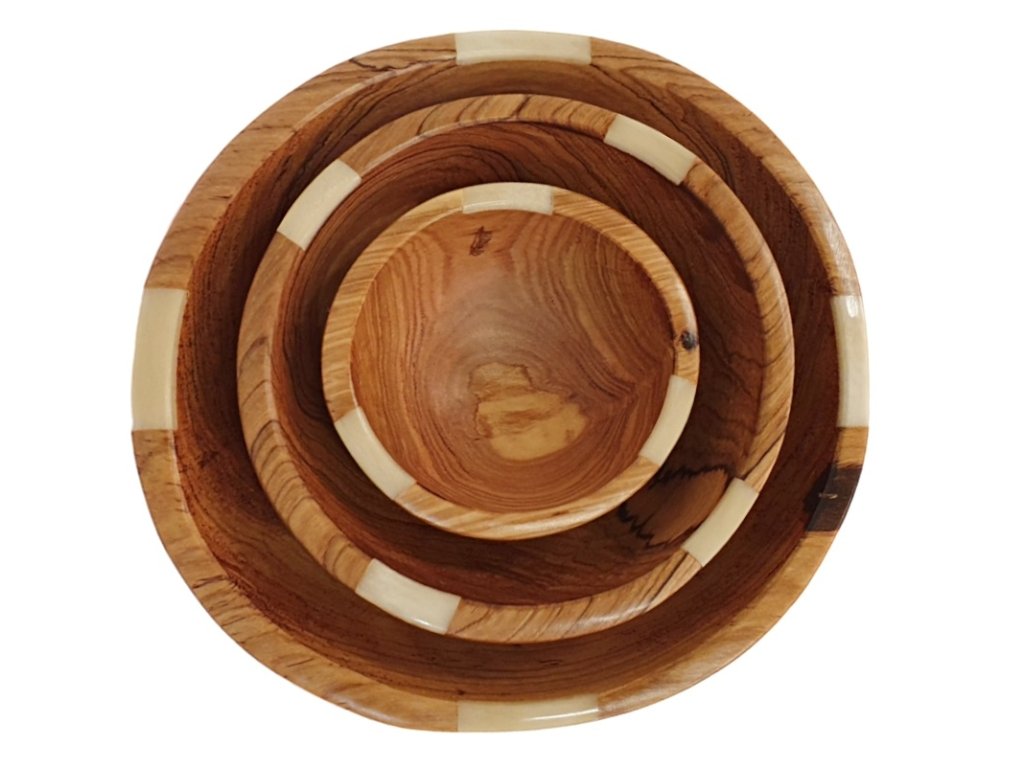 Objevte kouzlo africké umění při každém stolování s touto sadou misek z olivového dřeva!