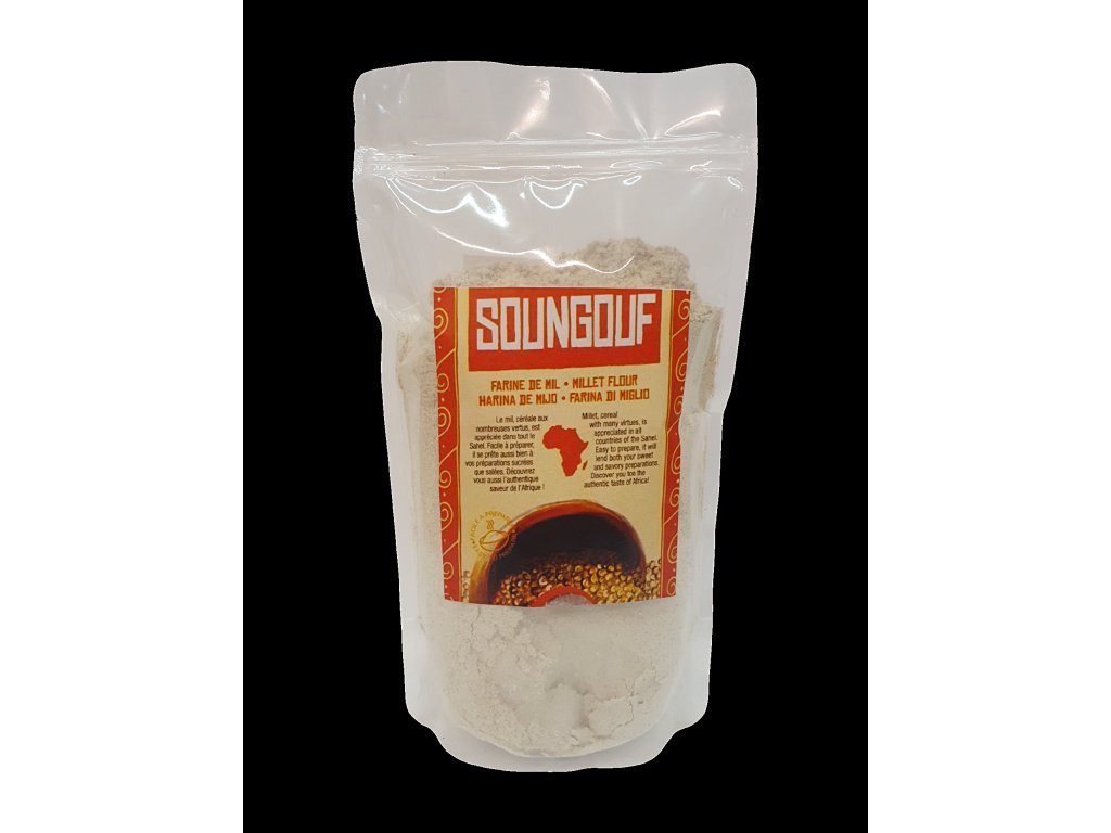 Mouka Soungouf se vyrábí z celých zrn perlového prosa, což zajišťuje zachování všech přirozených živin. Vyznačuje se jemnou texturou a lehce oříškovou chutí, která dodá pokrmům osobitý charakter. Je ideální pro přípravu tradičních afrických kaší, ale i pro moderní kuchyni – hodí se na pečení chleba, sušenek, koláčů, přípravu palačinek, zmrzlin i na zahušťování omáček, protože velmi dobře absorbuje tekutiny.