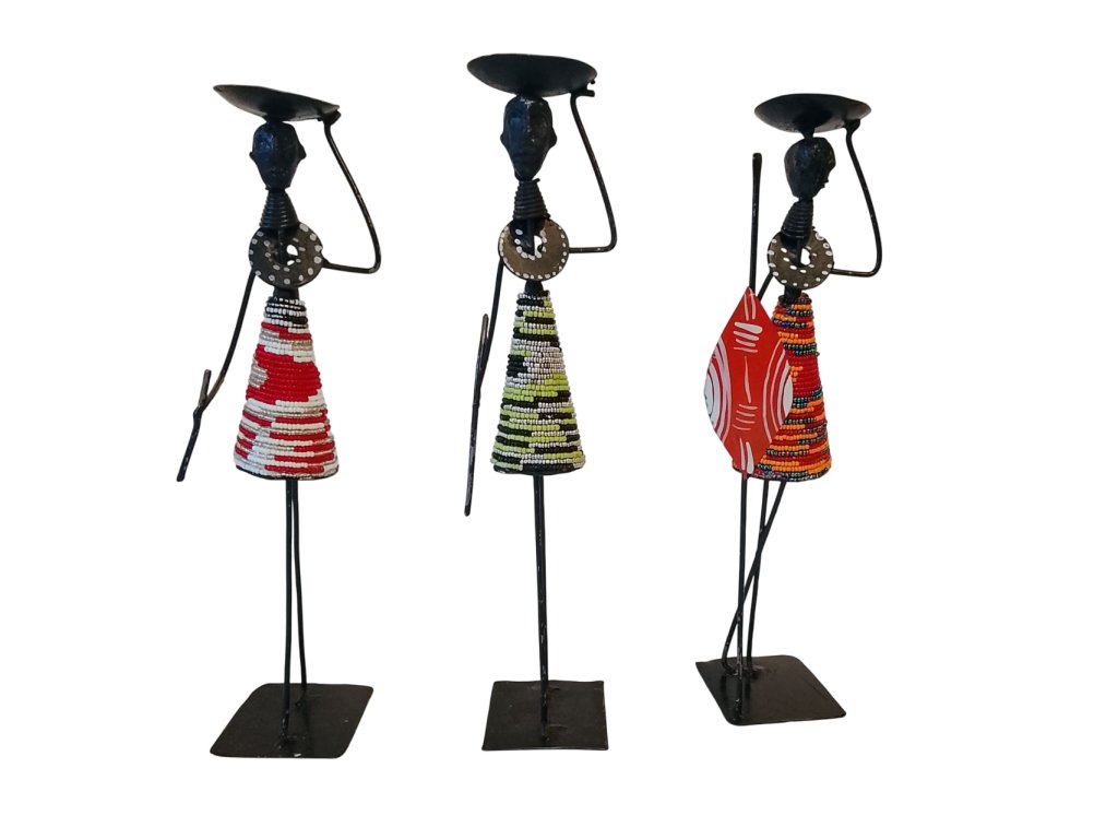 Svícen Masajská žena z Keni – recyklovaný kov a rokajl