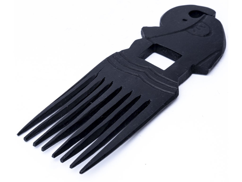 Péče o vlasy má v mnoha kulturách výjimečné postavení – v Africe bývá hřeben nejen každodenním pomocníkem, ale také projevem identity a tradice. Tento ručně zpracovaný kousek z Ghany tak spojuje řemeslnou dovednost, přírodní materiál a symboliku, která přesahuje samotný účel předmětu.