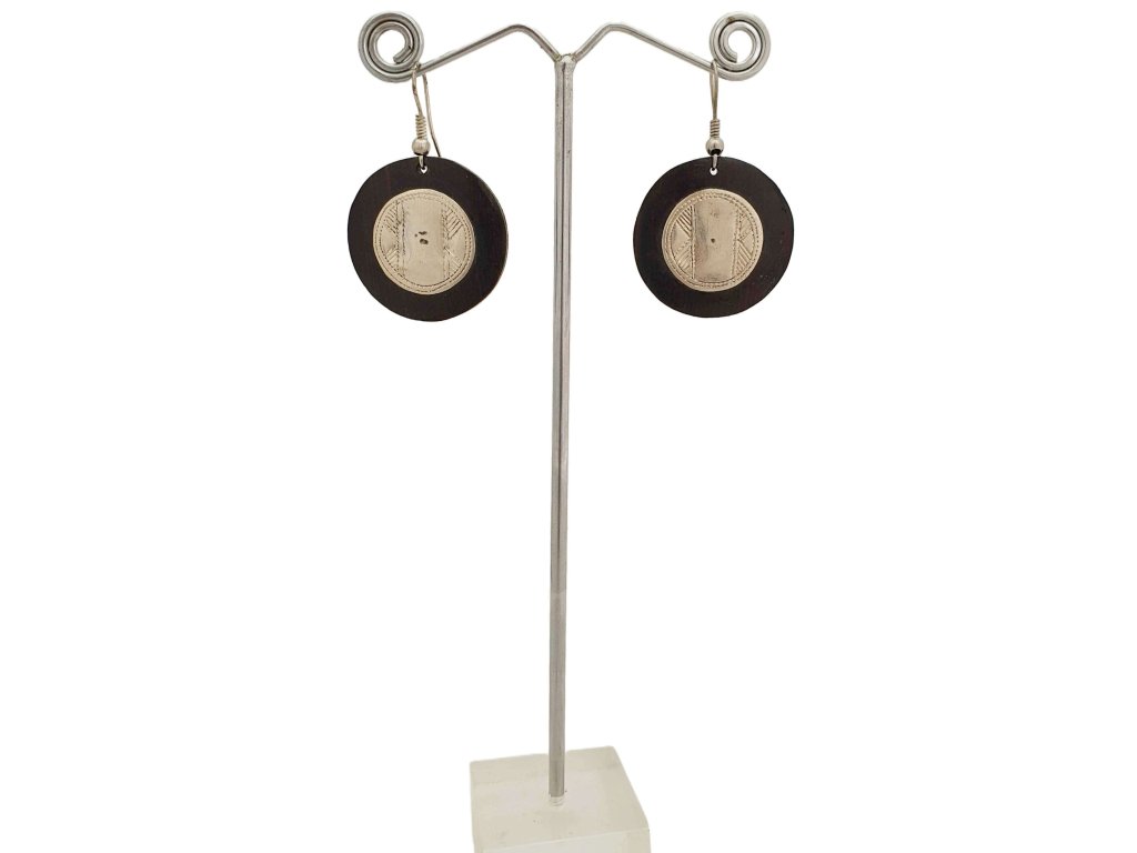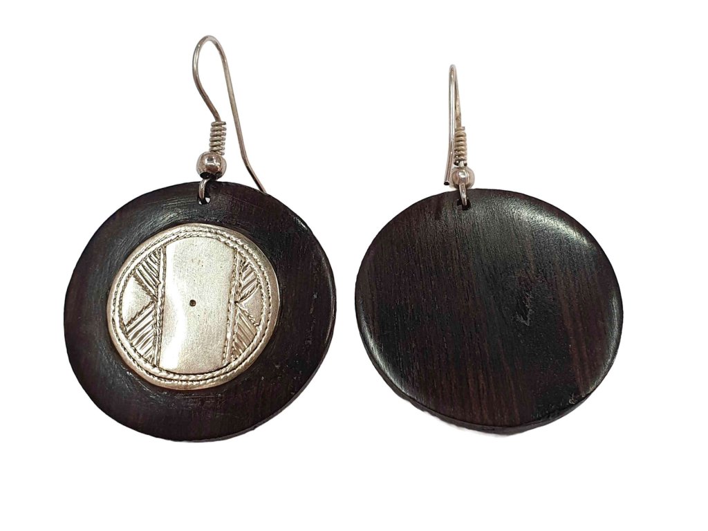 Tuarežské náušnice z ebenového dřeva a postříbřeného prvku