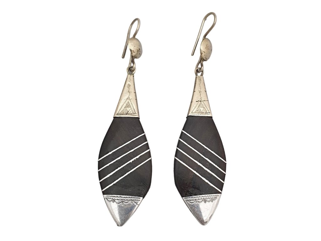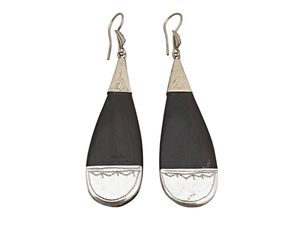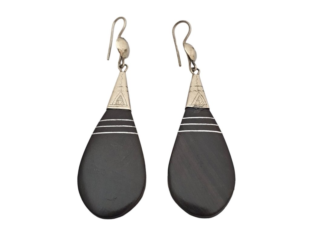 Objevte kouzlo afrického řemesla s tuarežskými postříbřenými náušnicemi z ebenového dřeva – jedinečnými šperky, které nesou příběh saharské kultury a elegance.
