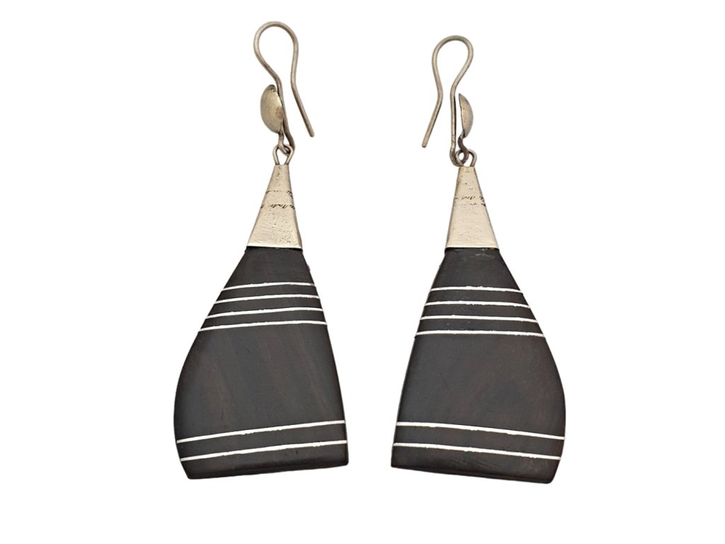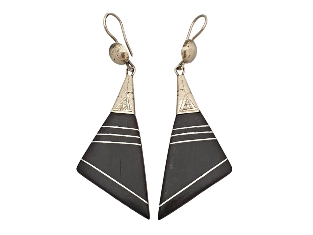 Tyto ebenové jsou důkazem toho, že tradiční umění může oslovit i moderní svět. Při jejich výrobě se používají ruční nástroje jako kladívka, kovadliny či rydla. Výsledek? Nádherný šperk, který v sobě nese ducha Sahary a dotek lidské ruky.ě vyráběné náušnice, tradiční africký šperk, etnické náušnice, šperky z Tuaregu, ruční výroba, ebenové dřevo