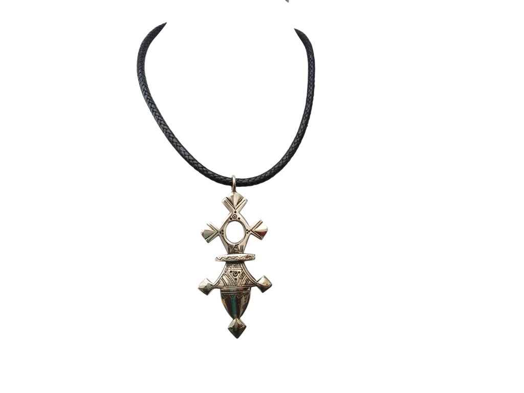 Tuarežský náhrdelník Kříž Iferouane - kožená šnůra