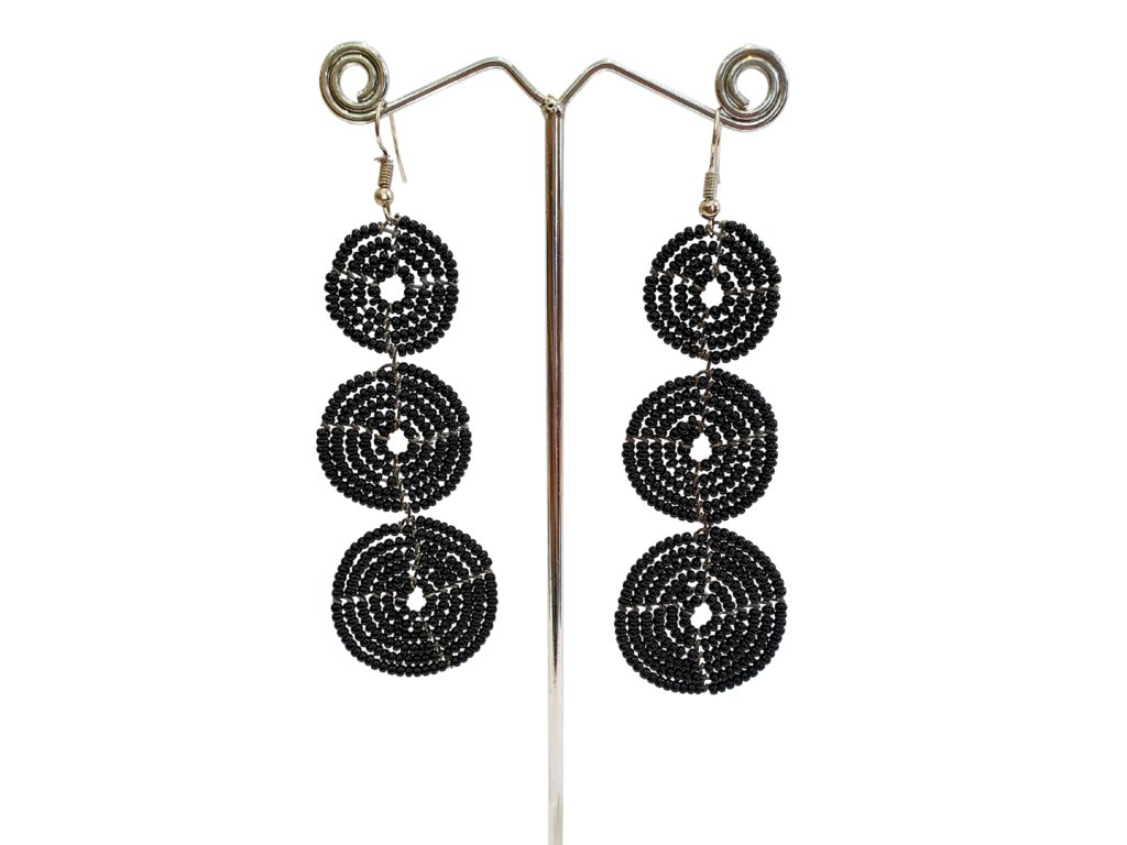 Vneste do svého stylu špetku africké originality s těmito ručně vyráběnými korálkovými náušnicemi z Keni, které v sobě spojují tradiční africké řemeslo s moderním designem. Tyto výrazné etno náušnice jsou tvořeny třemi kruhy zavěšenými nad sebou, vyrobenými z kvalitních barevných rokajlů. Každý pár je jedinečný originál – žádná masová výroba, ale poctivá ruční práce.